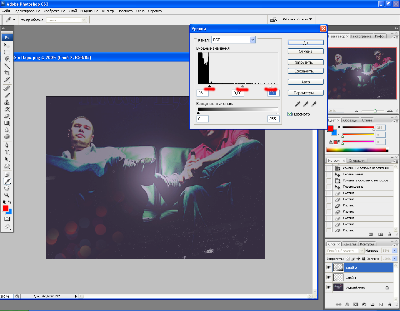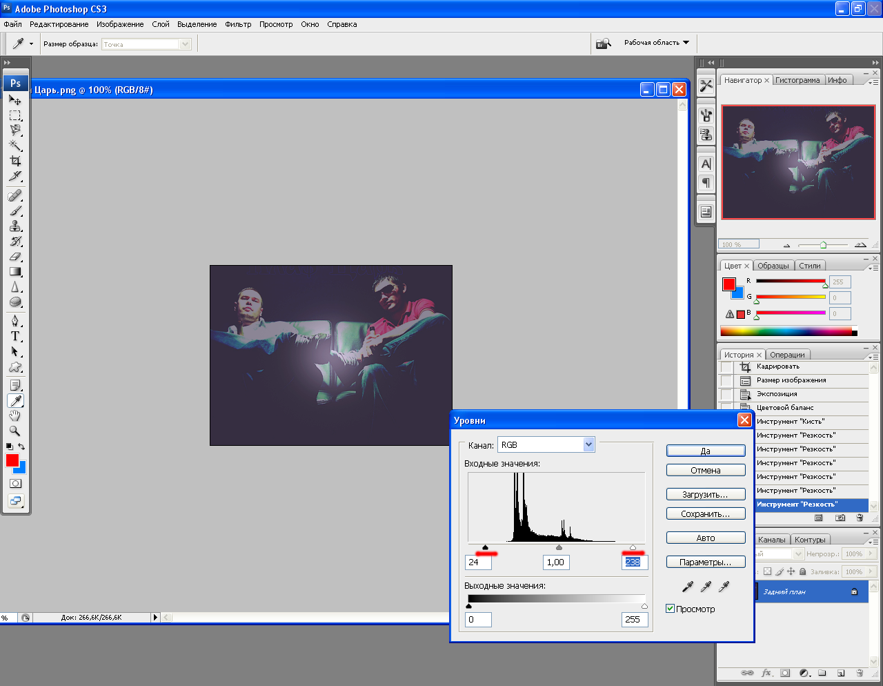 11. Идём в - Изображение | Коррекция | Уровни и выстраиваем всё как на скане.
