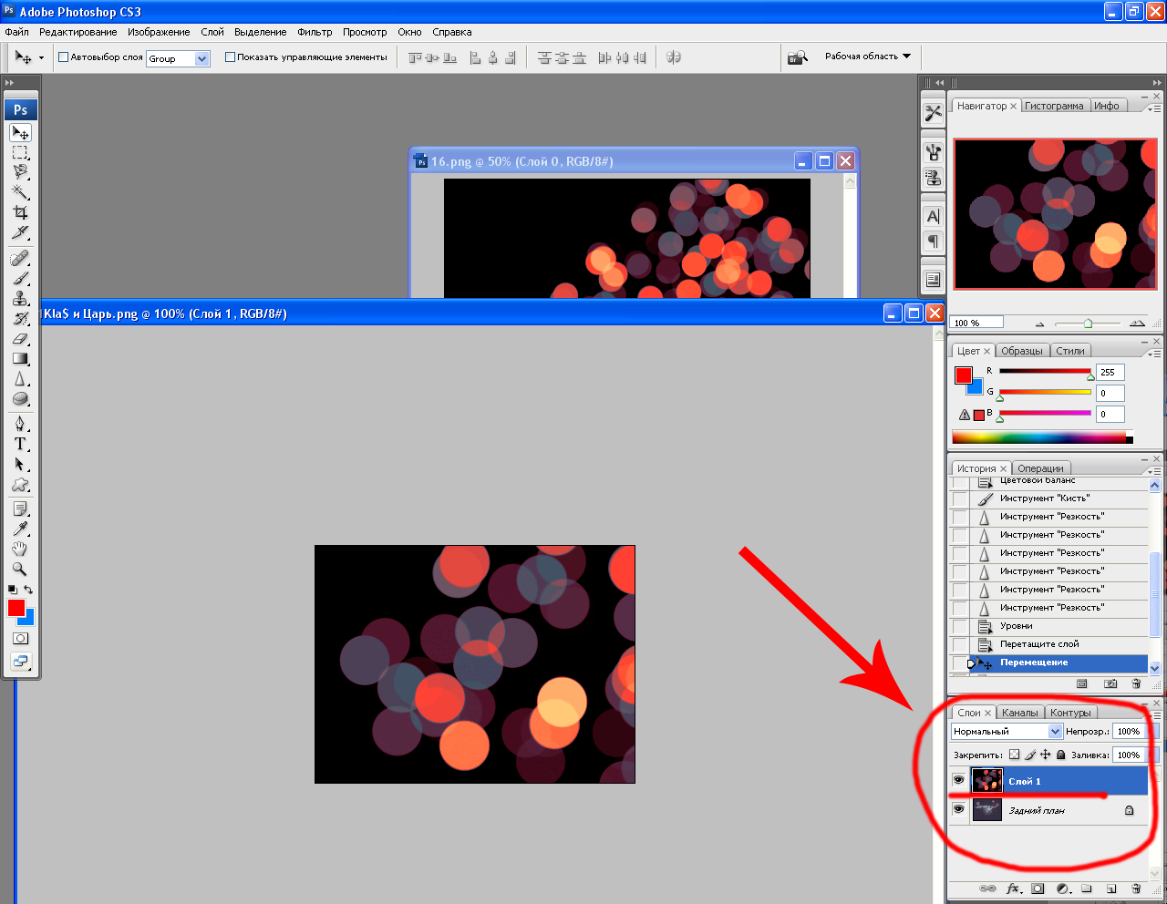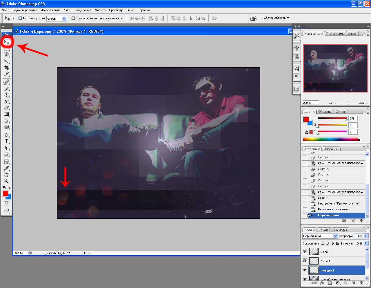19. Теперь весь кал что мы намутили, перетаскиваем в другой угол картинки, для этого выбираем стрелочку и перетаскиваем нашу текстуру как на скане.