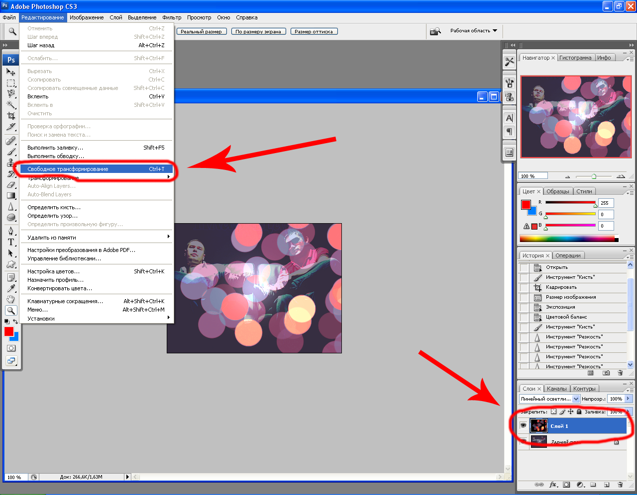 15. Опять же работаем с этим слоем, открываем свободное трансформирование.