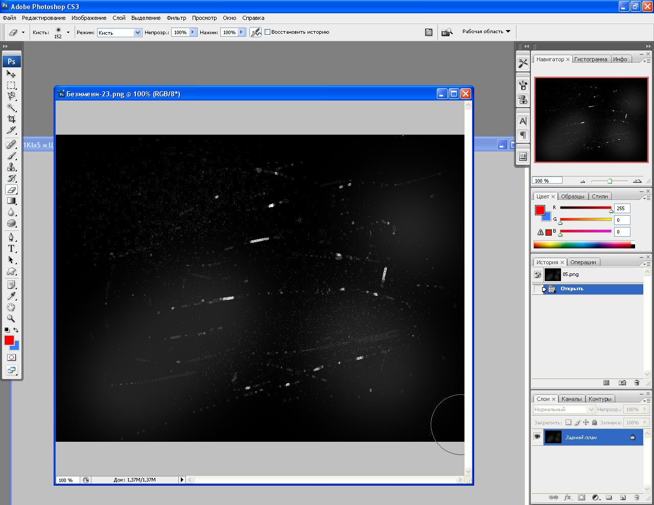 7. Берём мягкую кисть и делаем диаметр точно такой же, как и круг, окружающий истоптанные калоши ребят, обратите внимание какая стоит на скане, непрозрачность и нажим кисти.....так вот, ставим параметры как на рисунке и взяв в круг говнодавы, кликаем по ним один раз нашей кистью.