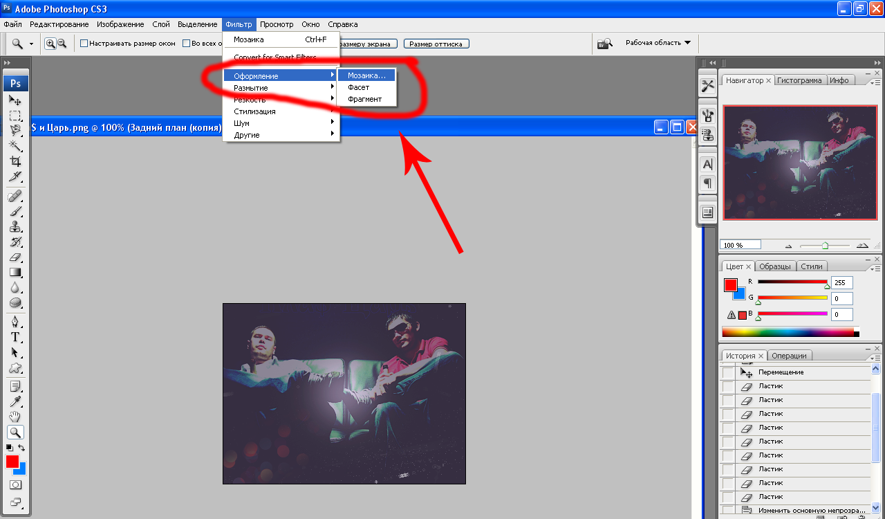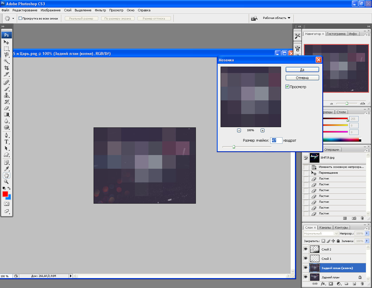 27. Работаем с копией слоя! Выбираем опцию - Фильтр | Оформление | Мозаика.
