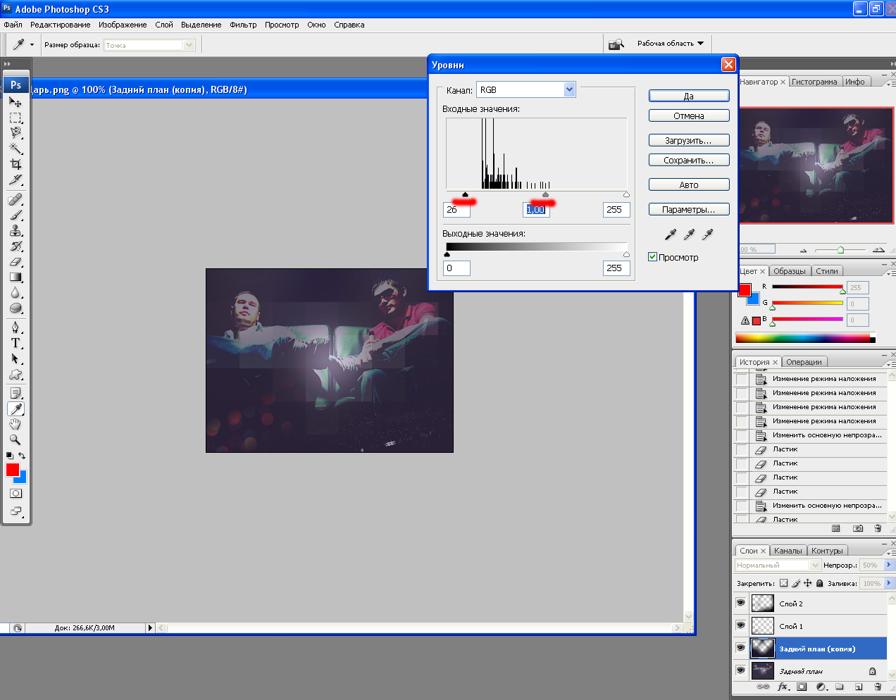 46. После того как мы открыли нашу, уже почти готовую работу, открываем уровни и чуток редактируем флажки.