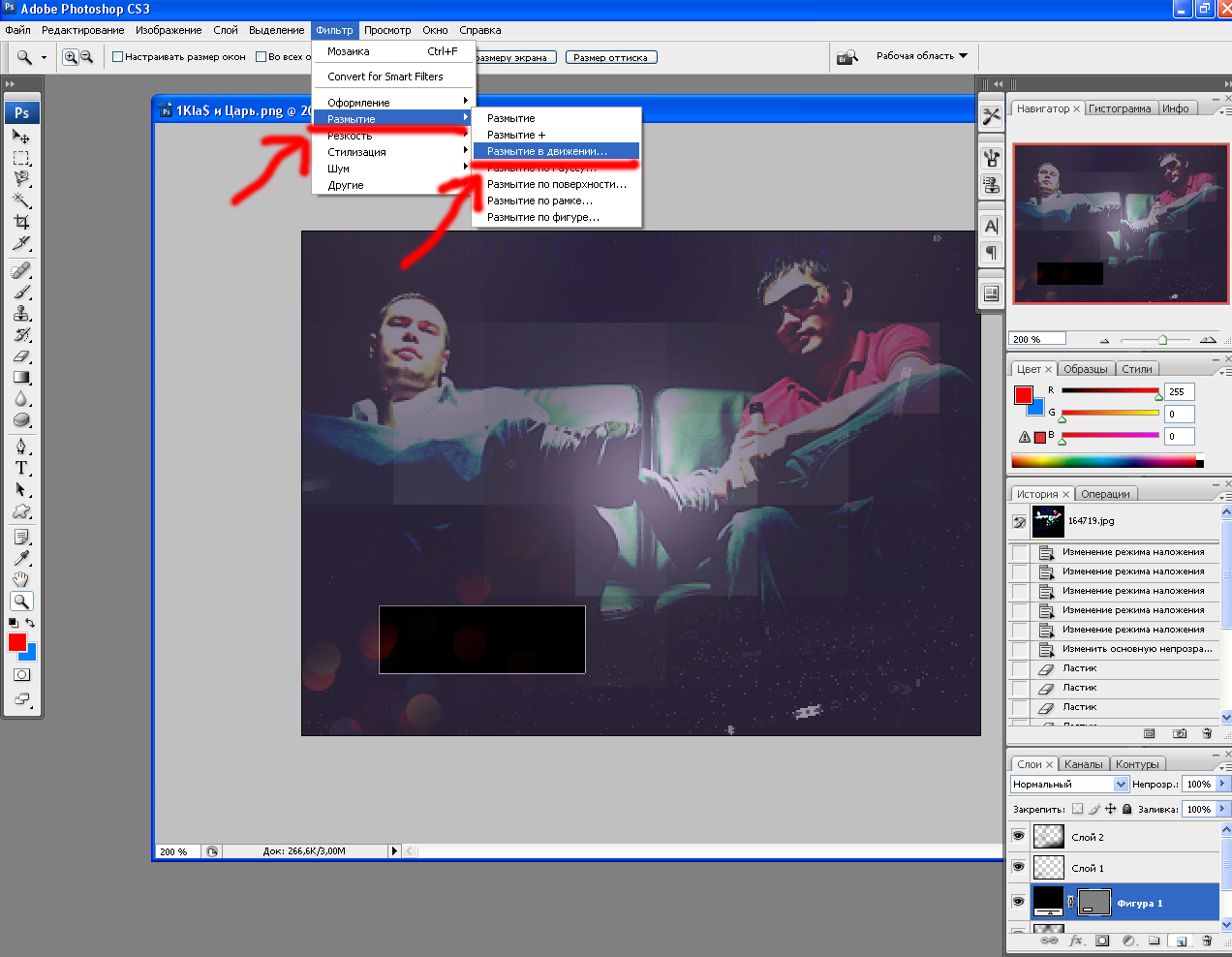 34. Выбираем - Фильтр | Размытие | Размытие в движении.