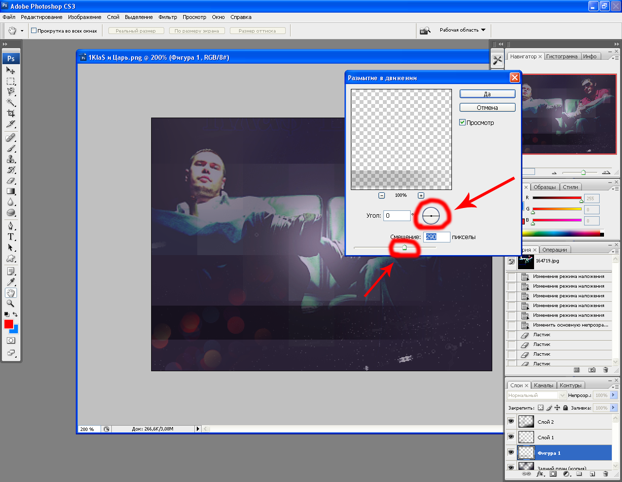 41. Дублируем текстовый слой "1Kla$ & Царь" и делаем размытие в движении.